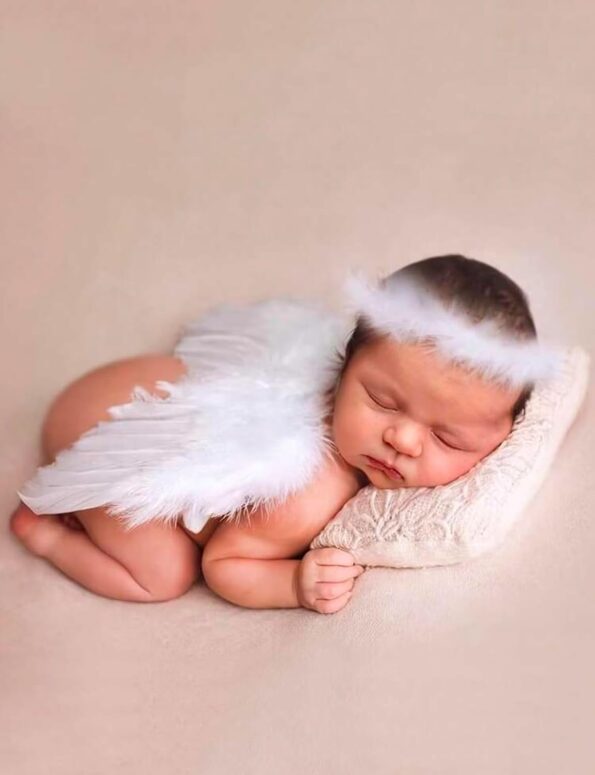 Make your baby’s photos extra special with this adorable angel wings and halo set. Available in white and pink, these soft feather accessories add a magical touch to newborn photography.