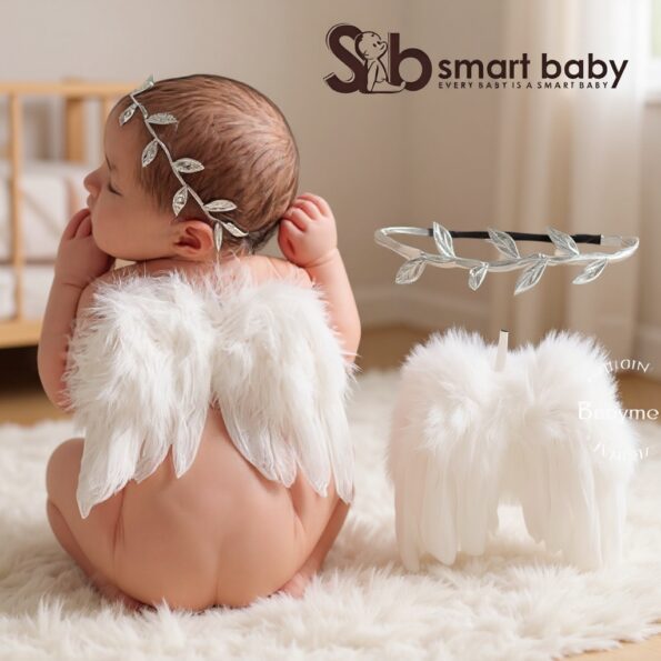 Make your baby’s photos extra special with this adorable angel wings and halo set. Available in white and pink, these soft feather accessories add a magical touch to newborn photography.